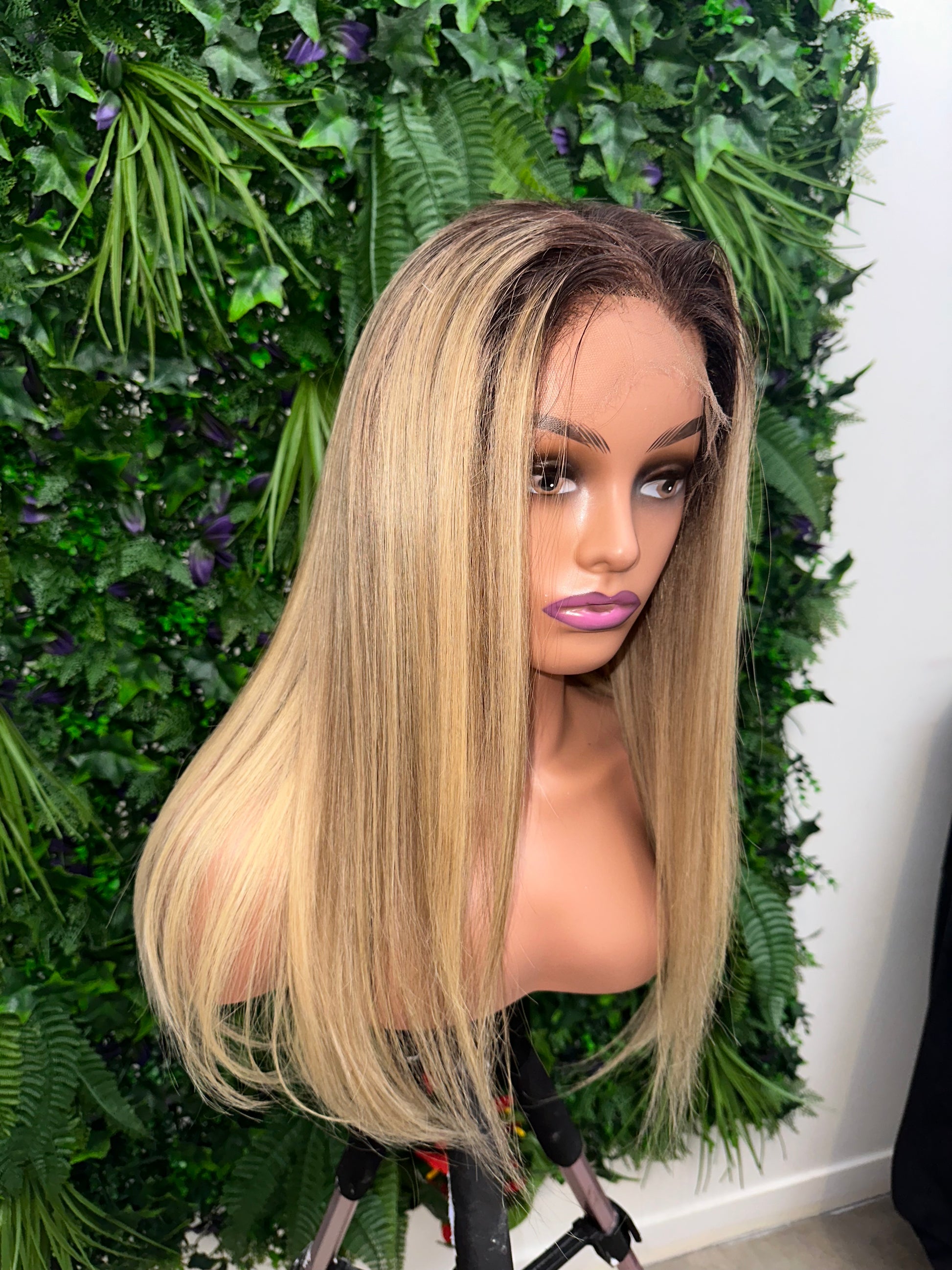 Perruque Raw hair blond 613 lisse 16 pouces avec lace frontal 13x4 hd