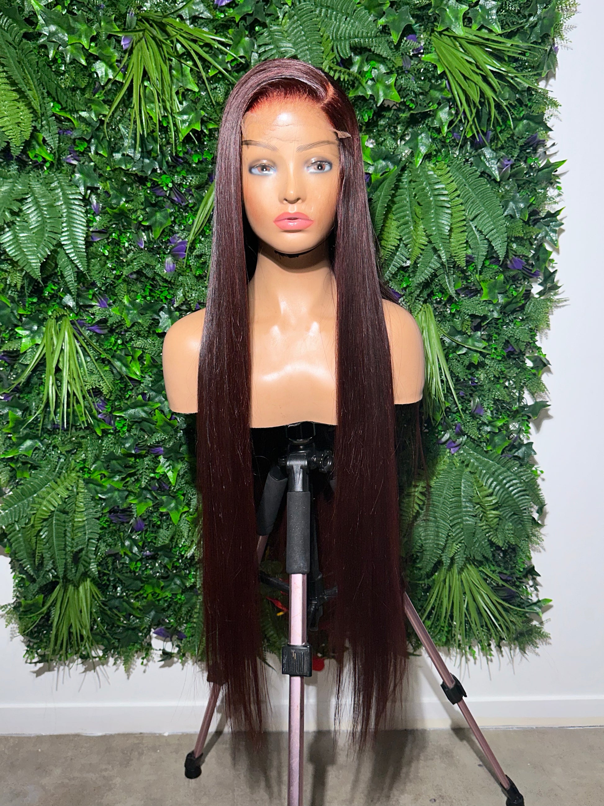 Perruque Raw hair bone straight très lisse 30 pouces avec x 3 paquets et 1 closure 5x5 hd + coloration rouge cerise