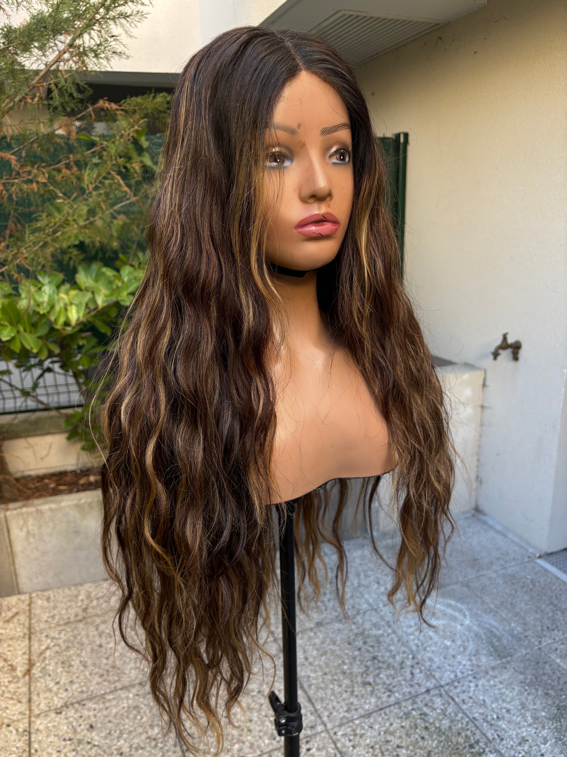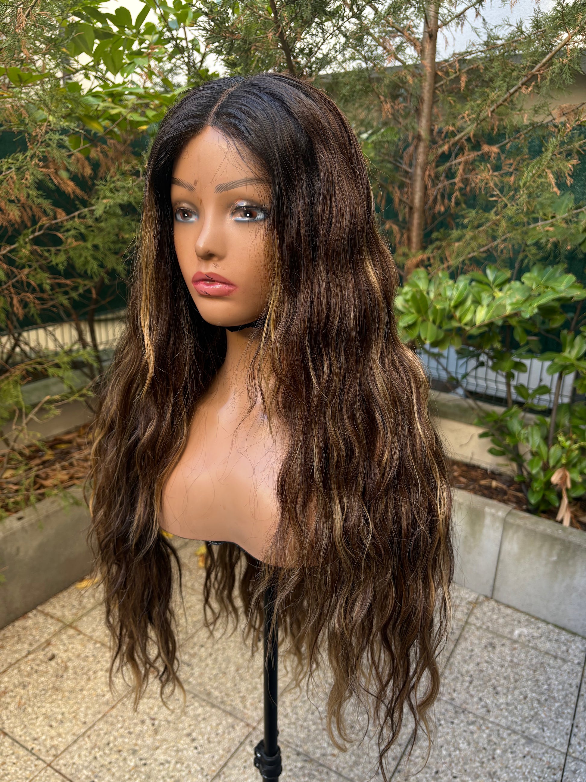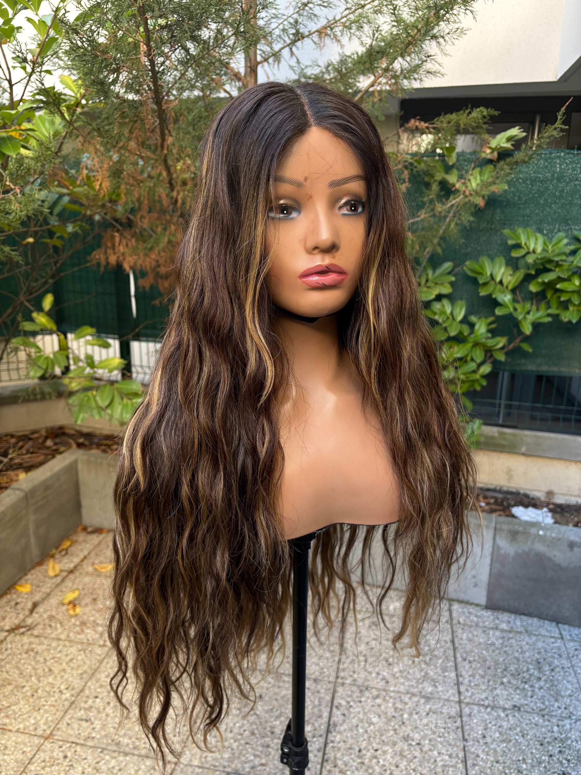 Perruque raw hair 24 pouces avec 3 paquets et Closure large, 7 × 7 HD