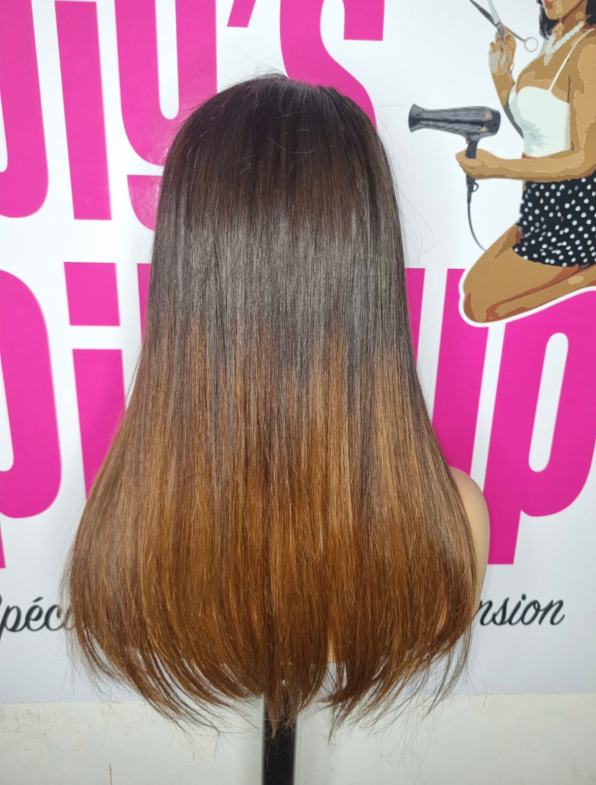 Perruque gold lisse 16 pouces avec lace closure 5x5 hd et tie and dye miel
