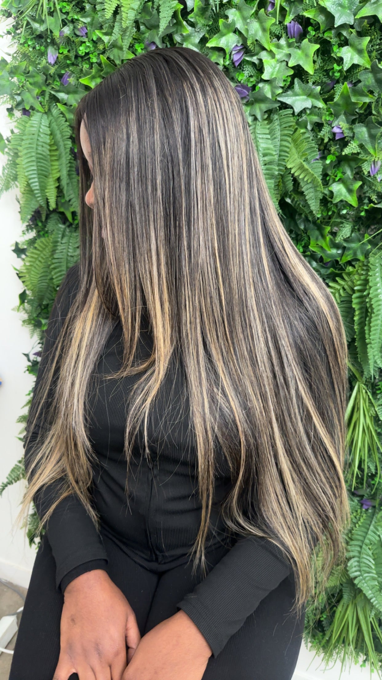 Perruque Raw hair 24 pouces avec 3 paquets et une lace closure 5x5 hd + coloration